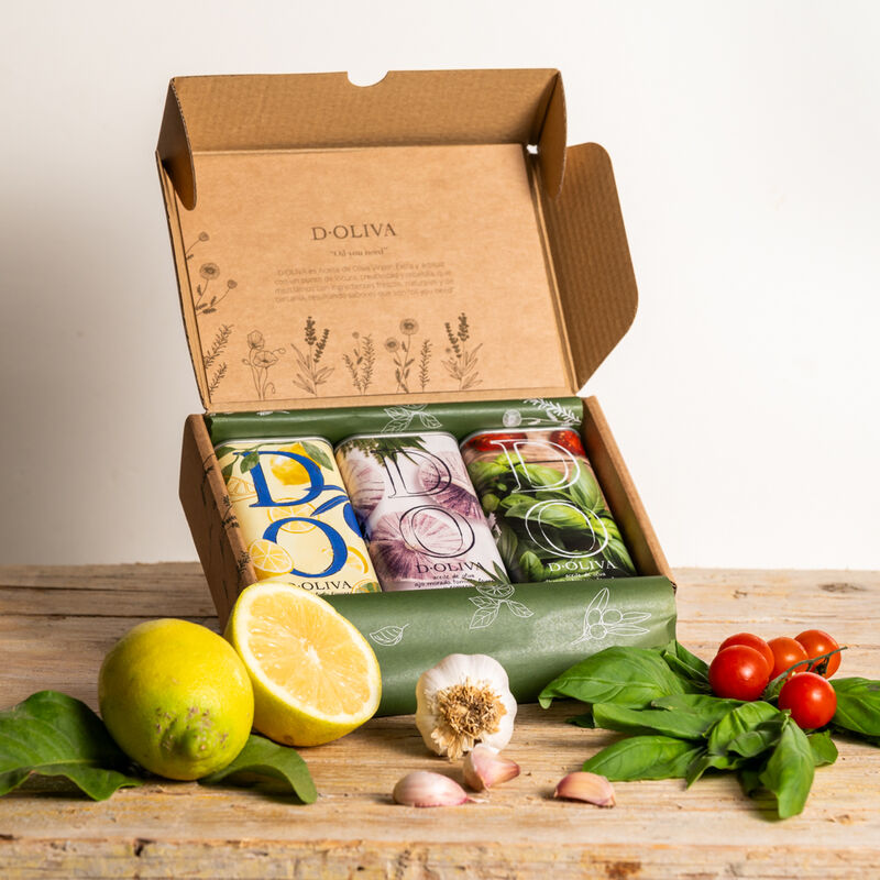 It includes our best seller DO Basil, an infused olive oil that delivers freshness and an irresistible herbal aroma; DO Garlic, intense yet well balanced, perfect for adding depth to your recipes; and DO Arbequina, a smooth and fruity single-variety extra virgin olive oil made from carefully selected Arbequina olives.