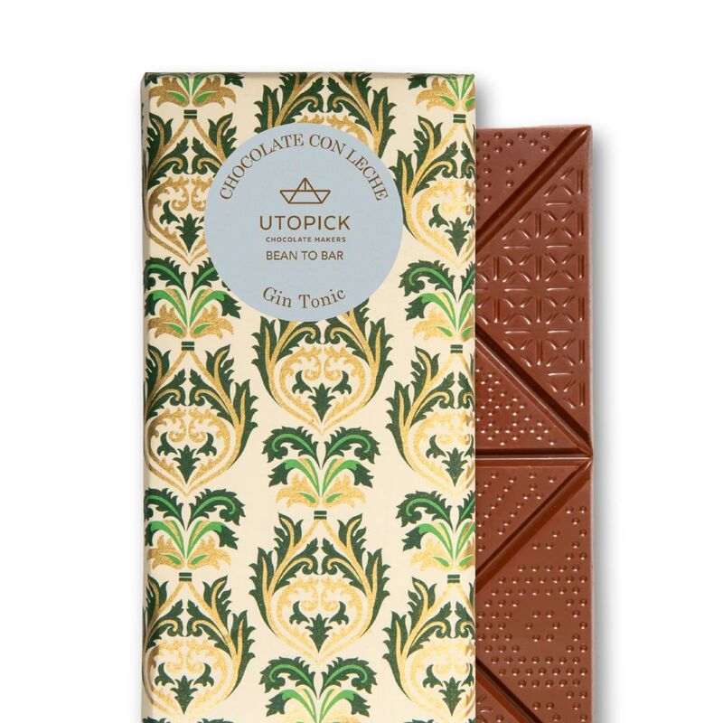 Milk chocolate bar 56% cocoa with juniper and lemon. Its flavor is reminiscent of that digestive glass after lunch that you like so much.